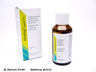 Die Aknefug Liquid 1% Lösung wird zur äußerlichen Behandlung von Akne, Ekzemen und Hautinfektionen angewendet. Die Lösung enthält den Wirkstoff Salicylsäure. Durch die Salicylsäure kommt es zu einer Lösung von Hornhautzellverbänden und einer Abschuppung der Haut, wodurch sowohl die Hauternährung, als auch die Hautdurchblutung verbessert wird. Der Wirkstoff verfügt über entzündungshemmende Eigenschaften.  ZU dieser Ablösung der Hornhaut kommt es dadurch, dass die Salicylsäure kleine Strukturen in der Hornzellwand auflöst. Die Aknefug Liquid 1% Lösung hilft unter anderem bei Hautentzündungen und Schuppenflechte.