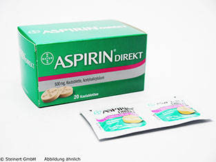 Die Aspirin Direkt Kautabletten werden zur schnellen Hilfe bei Schmerzen eingesetzt. Die Kautabletten enthalten den schmerzstillenden Wirkstoff Acetylsalicylsaeure. Durch die einfache Einnahme der Tabletten ohne Wasser sind sie besonders unterwegs eine gute Hilfe. Durch das kauen gelangt der Wirkstoff bereits fein verteilt in den Magen und kann so besser und schneller ins Blut uebergehen. Durch die Hemmung der Prostaglandine sorgt der Wirkstoff fuer eine Linderung der Schmerz- und Entzuenungsreaktionen im Koerper. Die Aspirin Direkt Kautabletten lindern verschiedene Schmerzarten, wie zum Beispiel Kopf-, Zahn- und Regelschmerzen.