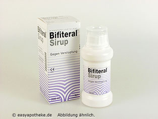 Der Bifiteral Sirup wird zur kurzfristigen Behandlung von Verstopfungen und Darmträgheit angewendet. Der Sirup enthält unter anderem den Wirkstoff Lactulose. Im Dickdarm wird der Wirkstoff von bestimmten Bakterien verarbeitet. Durch diese Verarbeitung wird das Volumen vergrößert und die Beweglichkeit des Darms erhöht, so dass die Darmwände stimuliert und der Stuhlgang ausgelöst werden. Die Lactulose ist in der Lage Wasser aus dem Körper in den Darm zu ziehen. Der Bifiteral Sirup hilft dank der natürlichen und schonenden Wirkungsweise schonend und zuverlässig bei akuten und chronischen Verstopfungen.