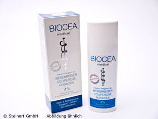 Die medikosmetische Premiumcreme BIOCEA® medical mit 4% Wirkstoffkomplex ist gezielt zur optimalen Hautpflege bei Besenreisern, Couperose und Rosacea entwickelt worden. Der Wirkstoffkomplex besteht aus GATULINE-A®, Rutin, Rosskastanienextrakt & Nachtkerzenöl. Vor allem durch die hohe Konzentration der Wirkstoffe in Verbindung mit dem biologischen Aufbau der Cremebasis wird eine effektive und nachhaltige Hautpflege ermöglicht. Fachärztlich geprüft und dermatologisch / allergologisch mit „sehr gut“ getestet.