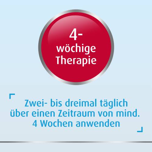 Die Anwendungsdauer richtet sich nach der Art der Beschwerden und/oder dem Verlauf der Erkrankung. Die Anwendung sollte nach Abklingen der Symptome noch 2 Wochen fortgesetzt werden. Allgemeine Behandlungsdauer: bei Pilzinfektion der Haut 3-4 Wochen, bei Zwergflechte 2-4 Wochen, bei Hautflechte durch Kleienpilz 1-3 Wochen, bei Pilzinfektion im äußeren Genitalbereich 1-2 Wochen. Bitte informieren Sie Ihren Arzt, wenn nach 4 Wochen Behandlung keine Besserung eintritt.