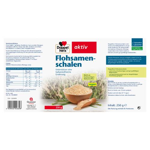 Doppelherz Flohsamenschalen unterstützen eine ballaststoffreiche und gesunde Ernährung. Die Samenschalen des indischen Flohsamens (Plantago ovata) haben einen hohen Gehalt an löslichen und sehr gut quellfähigen Ballaststoffen.