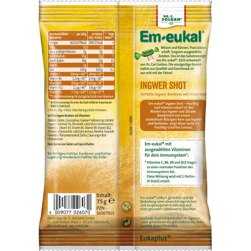 EM-EUKAL Bonbons Ingwer Shot gefüllt zuckerhaltig