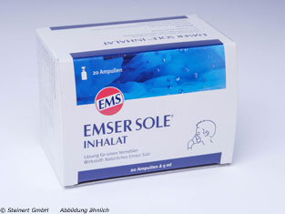 Emser Sole Inhalat mit der Heilkraft des Natürlichen Emser Salzes kann bei Erkältung, Heuschnupfen oder Atemwegsbeschwerden eine wirksame Hilfe sein. Durch die Inhalation mit Emser Sole Inhalat verflüssigt sich der fest sitzende Schleim, der Schleimtransport wird beschleunigt und Entzündungen werden reduziert. Am besten wird Emser Sole Inhalat mit einem elektrischen Inhalationsgerät inhaliert, denn so gelangt das natürliche Emser Salz in alle Bereiche der Atemwege, um hier seine Wirkung zu entfalten.