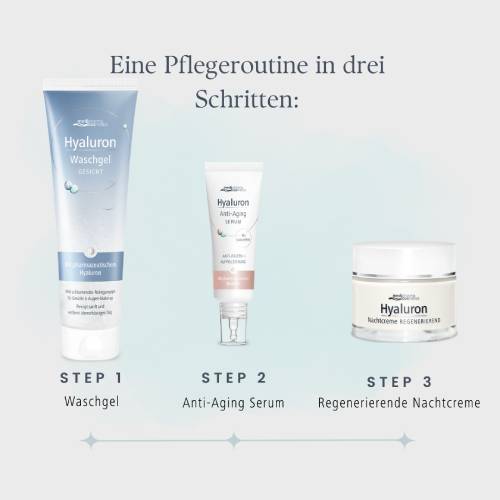 Entdecken Sie die Hyaluron Nachtcreme von medipharma cosmetics – speziell entwickelt für normale bis trockene Haut. Die bewährte Formel nutzt die Kraft von pharmazeutischem Hyaluron und Vitamin E, um Ihre Haut in der Nacht zu pflegen und zu regenerieren. Während Sie sich erholen, beginnt die Hyaluron Nachtcreme mit Anti-Aging-Effekt ihre Arbeit. Dank eines ausgewogenen Lipidanteils und dem enthaltenen Vitamin E spendet diese Gesichtscreme der Haut nachhaltig intensive Feuchtigkeit und stärkt die natürlichen Feuchtigkeitsfaktoren.