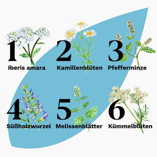 ·        einzigartige Kombination aus 6 Heilpflanzen mit hohem Anteil an beruhigenden, entzündungshemmenden und schleimhautschützenden Extrakten
