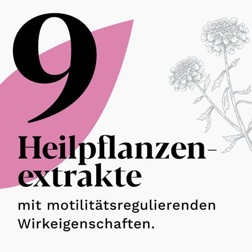·        einzigartige Kombination aus 9 Heilpflanzenextrakten mit einem höheren Anteil an Extrakten mit motilitätsregulierenden Wirkeigenschaften
