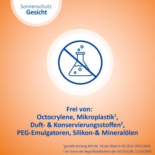 Die reichhaltige Öl-in-Wasser Emulsion pflegt und spendet Feuchtigkeit mit Hyaluronsäure und bietet eine ideale Grundlage für Make-Up. Sie schützt nicht nur effektiv vor sonnenbedingten Zellschäden, sondern unterstützt die Haut auch aktiv bei der Regeneration durch Photolyase. Die leichte Rezeptur legt sich sanft und schützend auf die Haut, ohne Augenreizungen oder Pilling-Effekte (Klumpen des Produktes auf der Haut) oder weiße Rückstände zu hinterlassen – so ist die wasserfeste Lotion der perfekte Begleiter im Alltag.