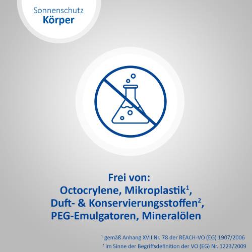 Dank der emulgatorfreien Rezeptur ist die Sonnenschutz-Lotion besonders gut verträglich und sorgt für ein leichtes und angenehmes Hautgefühl. Zudem pflegt sie die Haut und spendet intensiv Feuchtigkeit mit Hyaluronsäure. Die Lotion ist wasserfest und korallenfreundlich, was sie zum idealen Begleiter für den nächsten Urlaub macht. Die Verpackung ist recycelbar (muss nicht getrennt entsorgt werden) und schützt somit nicht nur die Haut, sondern trägt auch zur Nachhaltigkeit bei.