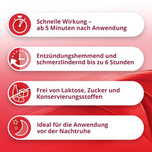 - Entzündungshemmend und schmerzlindernd bis zu 6 Stunden