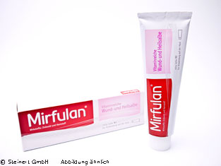 Die Mirfulan Wund Heilsalbe wird zur äußerlichen Behandlung von akuten Verletzungen der Haut angewendet. Die Salbe enthält eine Kombination der beiden Wirkstoffe Zinkoxid und Lebertran. Lebertran ist in der Lage den Juckreiz zu stillen, Krusten und Schuppen aufzuweichen und die Neubildung der Haut zu unterstützen. Das Zinkoxid sorgt für eine Schließung der Wundoberfläche, wodurch die Wunde geschützt wird und die Ausscheidung von Wundwasser gemindert wird. Die Mirfulan Wund Heilsalbe unterstützt den Heilungsprozess, beschleunigt den Regenerationsprozess und schützt und pflegt die Haut.