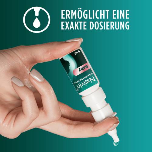 Nasivin® Dosiertropfer Baby abschwellende Nasentropfen sorgen bei Säuglingen für Erleichterung bei verstopfter Nase. Die einfach zu bedienende Dosierpumpe gibt kleine Tropfen ab, die Deinem Baby dabei helfen, besser zu atmen und dadurch leichter zu essen, trinken und schlafen. Eine einzelne Dosierung hält bis zu 12 Stunden an.