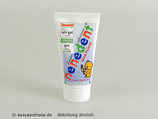Die Nenedent Kinderzahncreme ohne Fluorid wird zur gründlichen Reinigung der Milchzähne angewendet. Die Zahncreme enthält Fluorid, den Zuckeraustauschstoff Xylit und Putzkörper aus Kieselgel. Der Zuckeraustauschstoff Xylit verfügt über karieshemmende Eigenschaften. Die Putzkörper aus Kieselgel, welche für die mechanische Reinigung sorgen, verfügen über einen milchzahngerechten Abriebwert (RDA) von ca. 40 bis 50. Die Nenedent Kinderzahncreme ohne Fluorid ist so aromatisiert, dass Kinder gerne mit ihr Putzen.