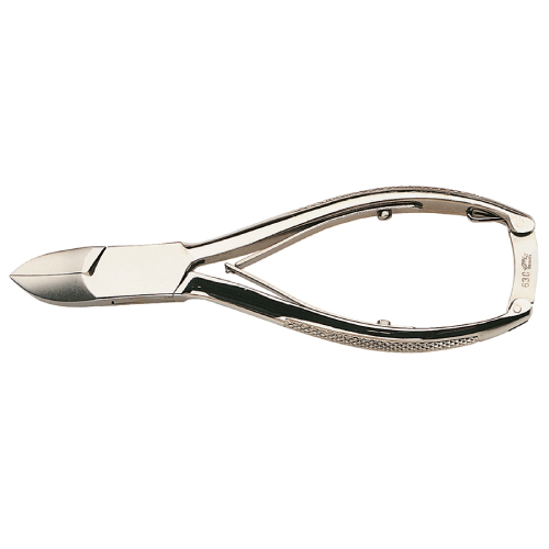 Nippes Pedicurezange, 140mm, professionelle Form, durchgesteckt, mit Kreuzfeder, vernickelt