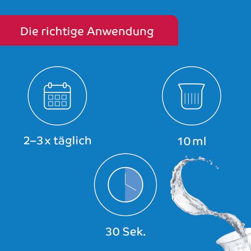 - Den Mund je nach Bedarf 2 - 3 mal täglich ca. 30 Sekunden spülen