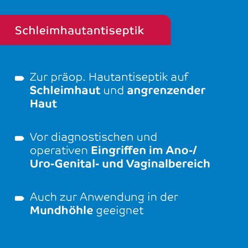 Die Octenisept Lösung wird zur Pflege von Wunden und zur Desinfektion der Haut angewendet. Die Lösung enthält eine Kombination der beiden Wirkstoffe Octenidin und 2-Phenoxyethanol. Das Octenidin ist in der Lage mit Bestandteilen der äußeren Zellwand zu reagieren, wodurch es zu einer Zerstörung der Zellfunktion kommt. Das 2-Phenoxyethanol zerstört die Eiweiße der Erreger, so dass deren Stoffwechsel verhindert wird. Die Octenisept Lösung eignet sich zur antiseptischen Wundbehandlung und zur Desinfektion vor ärztlichen Eingriffen.