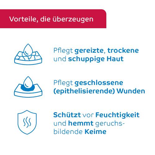 - Zur Pflege von empfindlichen und gereizten Hautstellen, z.B. bei Schuppenflechte oder nicht akuter Neurodermitis