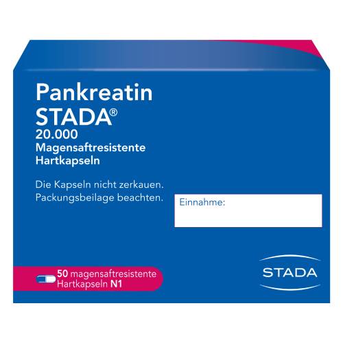 Wirkstoff: Pankreas-Pulver vom Schwein (Pankreatin) entsprechend 20.000 Ph.Eur.-Einheiten Lipase/Kapsel. Wird Zur Behandlung einer exokrinen Pankreasinsuffizienz angewendet. Hierbei produziert die Bauchspeicheldrüse nicht genügend Enzyme, um die Nahrung zu verdauen. Pankreatin STADA® kann bei Kindern, Jugendlichen und Erwachsenen angewendet werden. Die Behandlung mit Pankreatin STADA® verbessert die Symptome der exokrinen Pankreasinsuffizienz, einschließlich Stuhlkonsistenz (z.B. fettiger Stuhl), Bauchschmerzen, Flatulenz und Stuhlfrequenz (Durchfall oder Verstopfung). Wenn Sie sich nach 5 Tagen nicht besser oder gar schlechter fühlen, wenden Sie sich an Ihren Arzt.