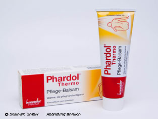 Der Phardol Thermo Pflege Balsam wird zur wohltuenden und wärmenden Pflege beanspruchter Muskeln angewendet. Der Balsam enthält eine Kombination aus verschiedenen feuchtigkeitsspendenden Substanzen, Vitamin E und Kiefernnadelöl. Durch die feuchtigkeitsspendenden Substanzen und das Vitamin E wird die Haut gepflegt und ihre Geschmeidigkeit gefördert. Bei einer sanften Massage mit dem Balsam kann der positive Effekt noch deutlich verstärkt werden. Der Phardol Thermo Pflege Balsam ist in der Lage eine wohlige Wärme zu verbreiten, die Muskeln zu entspannen und die Durchblutung der Haut zu fördern.