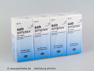 Die Sab Simplex Suspension wird zur rein physikalischen Behandlung von Blähungen und den damit verbundenen Beschwerden angewendet. Die Suspension enthält den Wirkstoff Simeticon. Dieser Wirkstoff besteht aus einer langkettigen organischen Siliciumverbindung. Das Simeticon ist in der Lage im Magen Darm Trakt in den Nahrungsbrei einzudringen und dort die Oberflächenspannung der eingeschlossenen Gasbläschen zu verringern, wodurch diese sofort zerfallen. Die Sab Simplex Suspension sorgt dafür, dass die eingeschlossenen Gase einfach auf natürlichem Wege ausgeschieden werden können.