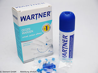 Das Wartner Warzen Spray wird zur Entfernung von Warzen angewendet. Das Spray enthält eine Kombination der beiden Wirkstoffe Dimethylether und Propan. Die Wirkstoffe sorgen dafür, dass die Warze bis auf die Wurzel vereist wird. Unter der Warze kommt es zur Entstehung einer Warze, wodurch sie nach ungefähr zwei Wochen abfällt. Während dieser Dauer hat die haut genug Zeit sich unter der Warze neu zu bilden. Durch das Wartner Warzen Spray wird die Gefahr einer Ausbreitung der Infektion gebannt und die Viren sicher abgetötet.