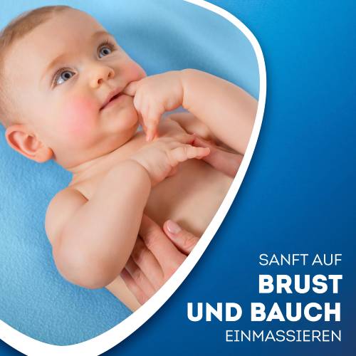 • WICK BabyBalsam wird sanft auf Brust und Bauch des Babys einmassiert.