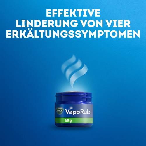 Egal, was Sie bei leichten oder stärkeren Erkältungen tun, WICK VapoRub Erkältungssalbe gehört bei Erkältung immer dazu! Das Erkältungsmittel lindert Symptome eines grippalen Infekts effektiv. Es ist wirksam bei Husten, Schnupfen, Heiserkeit und Verschleimung. Mit der WICK Vaporub Erkältungssalbe kann die ganze Familie wieder besser durchatmen.