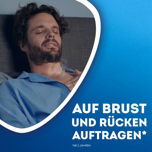 Auftragen auf Brust und Rücken (ab 2 Jahren): WICK VapoRub wird auf Brust und Rücken einmassiert. Bei Kindern ab 6 Jahren kann die Salbe vor dem Schlafengehen zusätzlich sanft auf den Hals aufgetragen werden. Während der Anwendung sollte möglichst lockere Kleidung getragen werden, um das Einatmen der Dämpfe zu erleichtern. Bitte beachten: die empfohlene Anzahl von 2 bis 4 Anwendungen pro Tag sollte nicht überschritten werden.