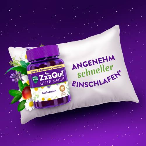 - KEIN GEWÖHNUNGSEFFEKT: WICK ZzzQuil Gute NachtTM, bei Bedarf 30 Minuten vor dem Schlafengehen 1 Weichgummi im Mund zergehen lassen, ermöglichen Sie danach mindestens 6 Stunden Schlaf